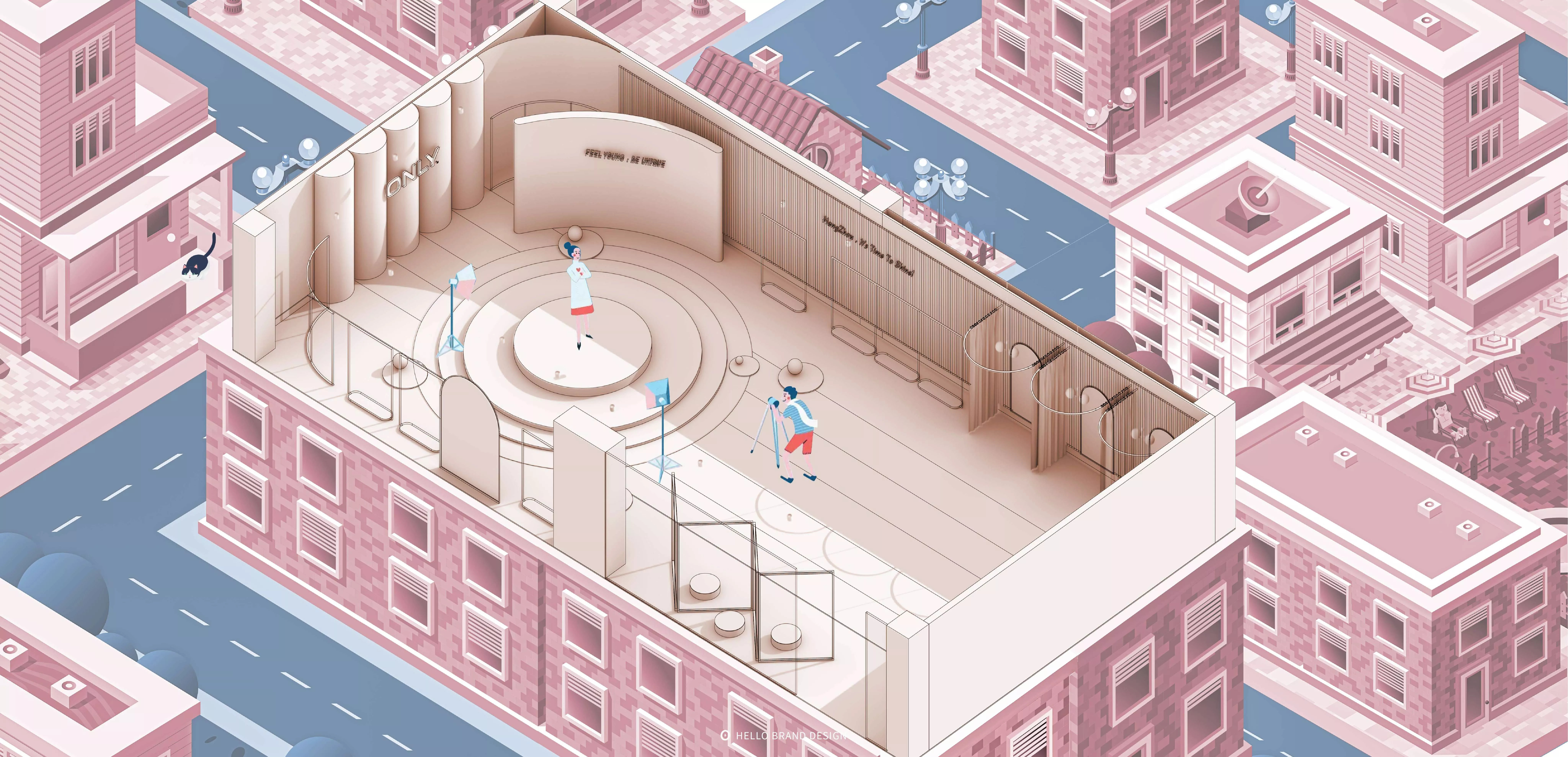 定制服务:针对ONLY品牌直播间项目聚焦“空间设计、灯光设计、道具设计、软装设计”